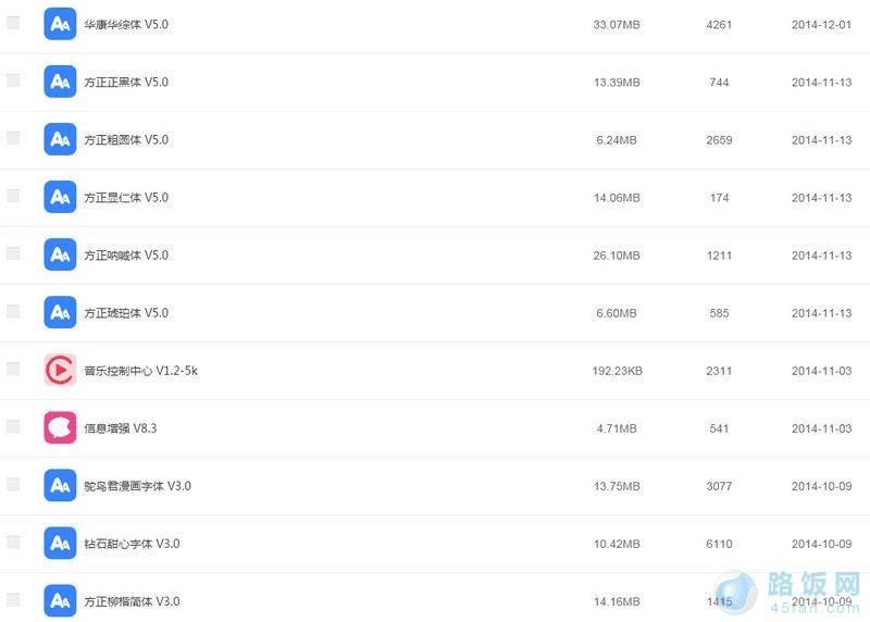 当让,刀八木源作为目前功能最齐全,产品最丰富的源,可不仅仅一个“电池助手”插件哦!刀八木源它还有一百多个其他的插件和游戏,亲们往下翻,你会发现一大波字体,如下图所示: