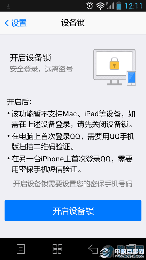 第二步:点击--下边的设备锁(未开启),进入开启设备锁界面。