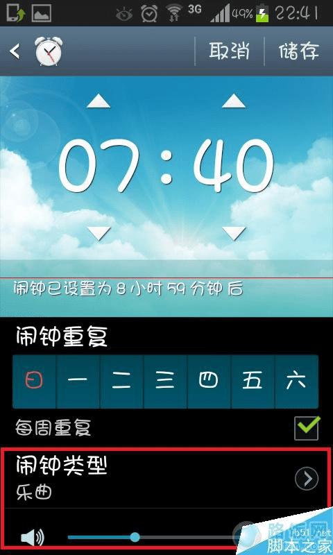 5、自己闹钟就得有声音啦,但是声音不要太大,尽量不要让自己吓醒,可以选择一些比较舒缓的音乐。