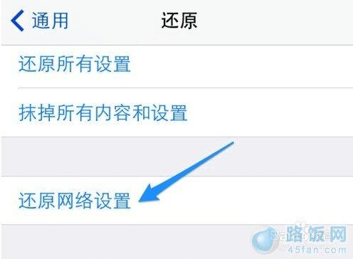 5、接着在通用列表的底部找到“还原”按钮,点击进入,再点击“还原网络设置”选项