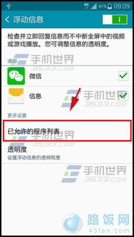 2)将浮动信息开启,如需设置更多程序,请点击【已允许的程序列表】。(如下图)
