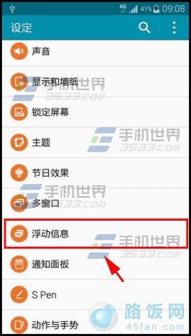 1)打开三星note4手机【设定】,找到并点击【浮动信息】。(如下图)