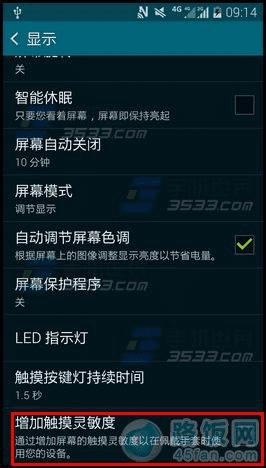 如果老是觉得自己的三星S5手机触摸屏不好用,可以在设置中增加触摸灵敏度,这样用起来就觉得方便多了。