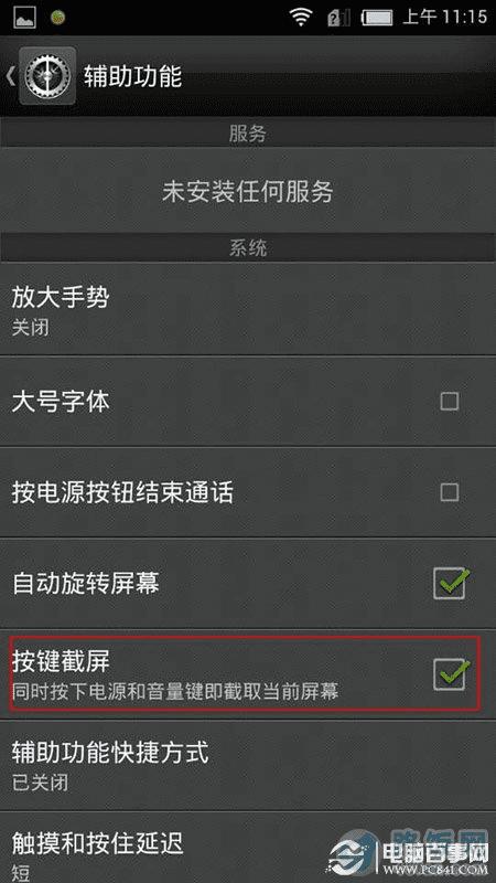 3:辅助功能里面的系统→勾选按键截屏→就可以了