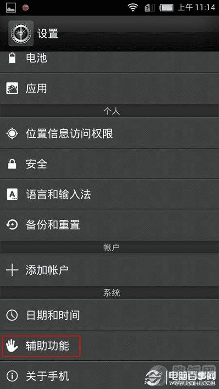 2:将屏幕拉动到最下面的打开→系统→辅助功能→如下图所示