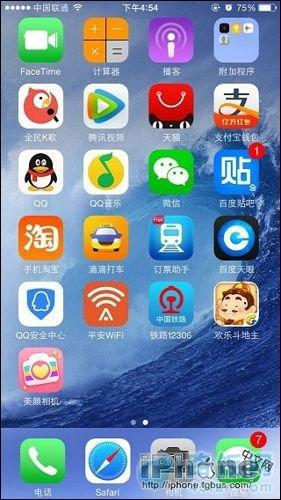1、首先进入iPhone6 Plus桌面,然后找到需要卸载的软件,用手指按住该软件桌面图标不放,大约3-5s左右,所有的图标都会开始抖动,如下图所示。