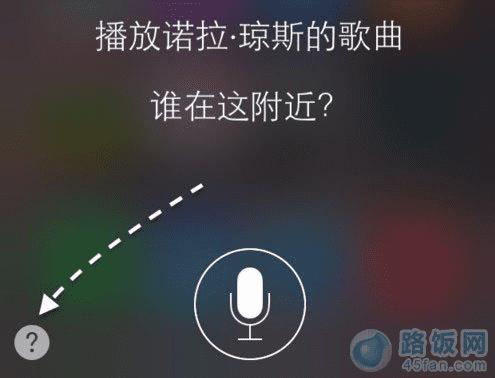 9.如果要查看 Siri 的使用帮助,可以点击屏幕左下角的问号图标,如图所示