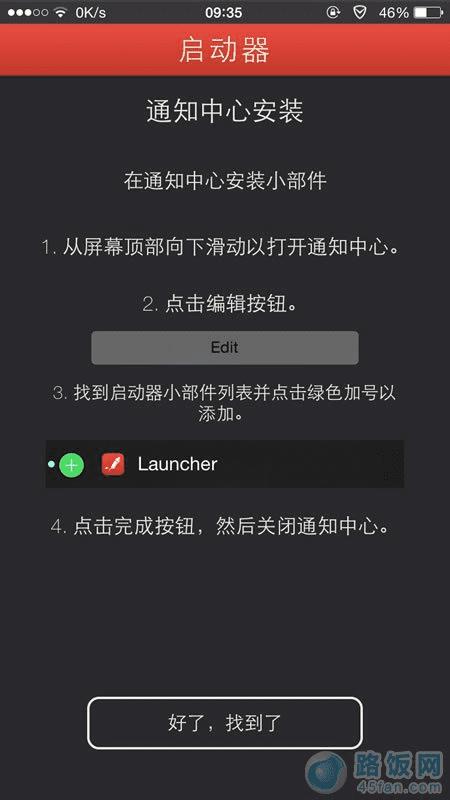 2.下拉通知中心,点编辑,将launcher 添加到通知中心里