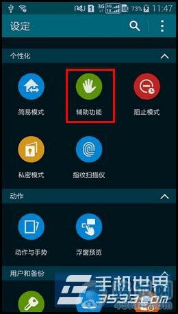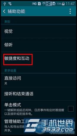 1)打开三星S6手机【设定】点击【辅助功能】,选择【敏捷度和互动】功能。(如下图)