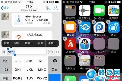 第二步:选好之后我们就可以退出QQ了,之后选中某个应用文件夹,长按该文件夹几秒,该文件夹就会晃动起来,之后打开应用,点击上方右侧的删除图标,删除文件夹名称,之后点击屏幕然后选择粘贴前面拷贝的内容。