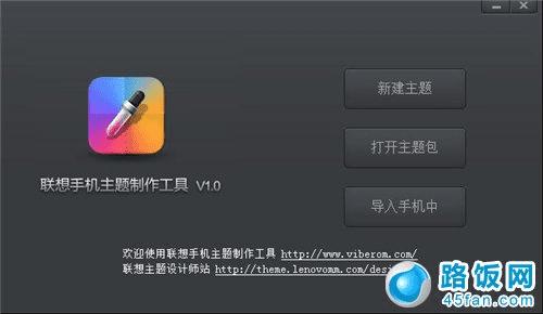 1、打开主题制作工具:在桌面上双击「联想手机主题制作工具」程序的图标,打开后如下图 :