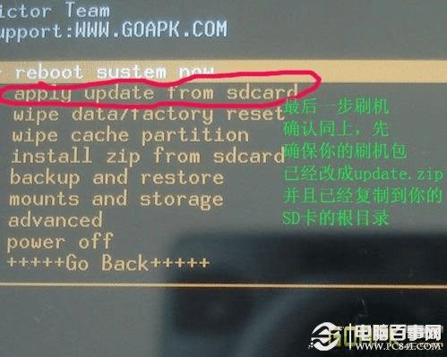 (我们要做的就是把它改名为update.zip,并且把它用你知道的方法复制到你的SD卡的根目录)好了,现在一切就绪,准备开刷,开刷前先安装一个"钛备份"的软件,把你手机里的联系人,你装的程序都备份到卡上面,当然你也可以用91手机助手或豆荚备人,日历等资料,万一丢了你就等着哭吧,务必做好备份工作先。