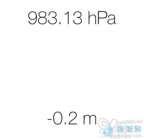 当我们调整手机的高度时,此时你会发现屏上会显示变化的数据。看到图中显示的 hPa 了吗?这就是 iPhone6 通过自身的气压计得出当前的气压压强数值,以 hPa 压强单位来表示的。