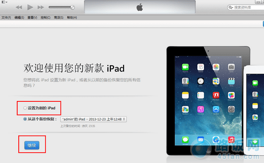5、恢复完成之后,在iTunes上点击“设置为新的设备”