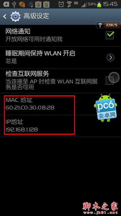 查看安卓手机mac地址和内网(局域网)IP地址的方法: