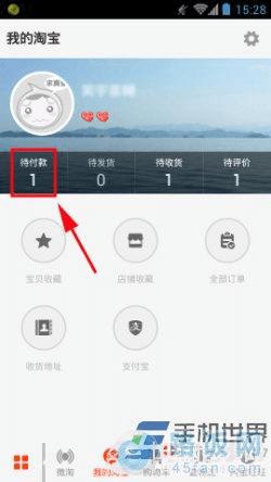 1)打开淘宝手机客户端,拖动下方的菜单栏找到“我的淘宝”,点击“我的淘宝”界面的“待付款”,在“待付款订单”界面点击需要取消的订单进入订单管理。(如下图所示)