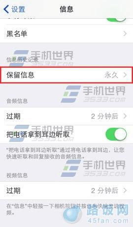 1)打开iPhone6Plus的【设置】,选择【信息】,然后点击【保留信息】。