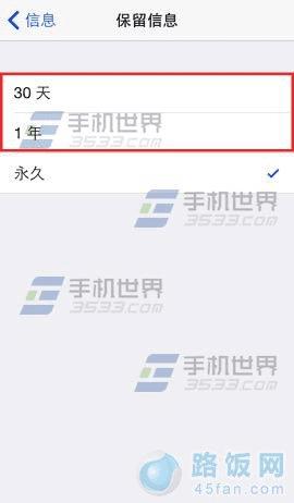 2)然后我们可以选择信息保留的时间,大家可以根据自己的需求自行选择。