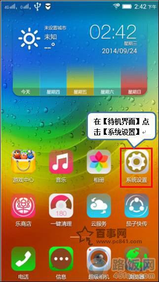 1、在手机待机的界面下,点击【系统设置】,如下图;