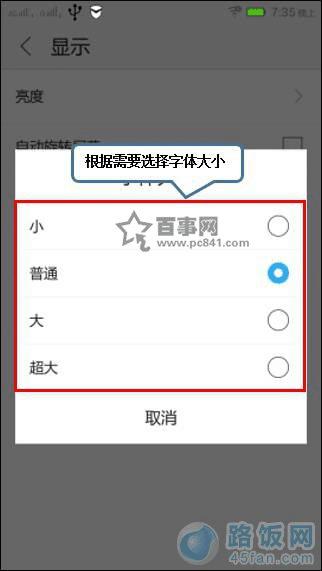 4、在弹出的对话框中,可根据自己阅读的习惯对系统字体大小进行设置,如下图;