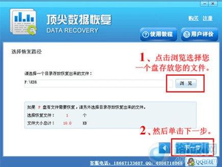 第五步,点击浏览选择一个盘存放要恢复的文件,然后单击下一步。(存放的位置要和恢复文件的位置不同,以免被覆盖)