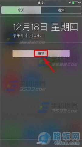 1)首先在iPhone6屏幕顶端用手指从上往下滑动拉出通知中心,然后再点击编辑。