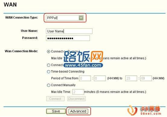 注:其它上网方式,如PPPOE拨号也同上设置方法一样,如下图所示: