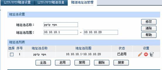 A.VPN----->PPTP/L2TP----->隧道地址池管理:建立隧道地址池(L2TP vpn隧道通信时使用的ip地址):