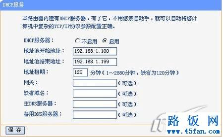 将DHCP服务启用之后,路由器可以自动为计算机分配IP地址、网关和DNS服务器,前提是用户必须在DHCP选项中将各项参数填写好。