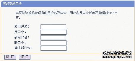选择菜单系统工具→修改登录口令,可以在下 图 5-59 界面中修改登录路由器管理界面的用户名和密码。修改完成后,点击保存按钮即可。