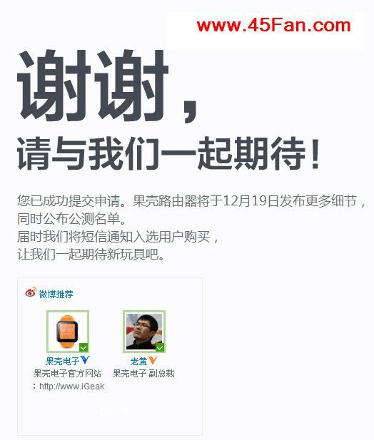 编后语:以上就是关于果壳路由器预定流程,挺简单吧!至于能否拿到公测资料,就要看你的运气喽!
