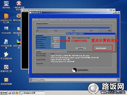 八:点击"yes"后就开始系统自动进入系统安装了,这个系统安装界面相信对电脑有些了解的朋友都很熟悉了