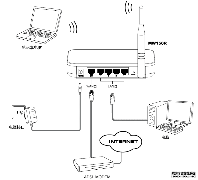 3、连接电源。连接好电源,路由器将自行启动。(如图1)