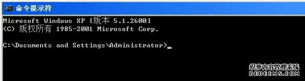 在Windows XP 环境中,点击开始-运行,在随后出现的运行窗口输入“cmd”命令,回车或点击确定进入下图所示界面。
