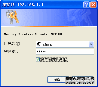 开启IE浏览器程序,在地址栏中输入“http://192.168.1.1”,回车确认后您将会看到下图所示登录界面,在登录对话框中输用户名和密码(出厂设置默认均为“admin”),单击“确定”按钮。