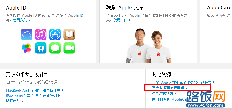 3、在下方的【其他资源】栏目中点击【查看支持和服务期限】链接,如下图所示: