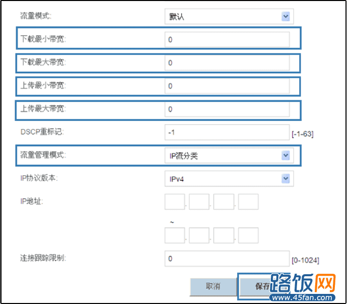 3) 在下载最小带宽,下载最大带宽,上传最小带宽和上传最大带宽的文本框中输入您自定义的速率值。