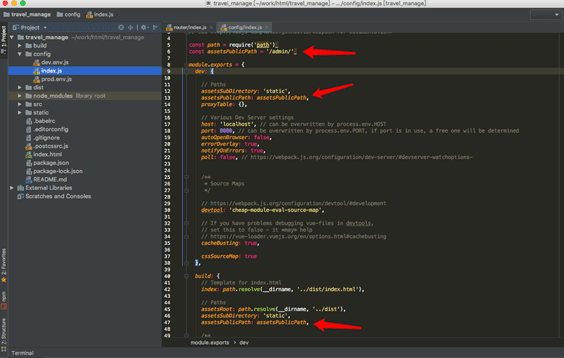 然后修改 下面两处assetsPublicPath 的值为定义的变量
