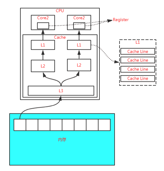 按照数据读取顺序和CPU的紧密程度,CPU的缓存可以分为一级缓存(L1)、二级缓存(L2)、三级缓存(L3),每一级缓存存储的数据都是下一级的一部分。
