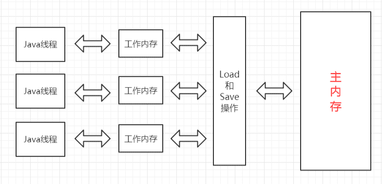 除了主内存,每条线程还有自己的工作内存,此处可与CPU的高速缓存进行类比。工作内存中保存着该线程使用到的变量的主内存副本的拷贝,线程对变量的操作都必须在工作内存中进行,包括读取和赋值等,而不能直接读写主内存中的变量,不同的线程之间也无法直接访问对方工作内存中的变量,线程间变量值的传递必须通过主内存来完成。
