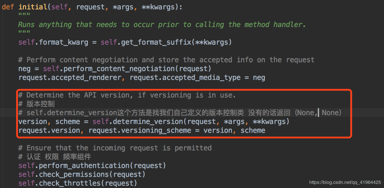 执行self.initial方法之前是各种赋值,包括request的重新封装赋值.