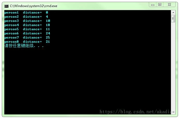 cout <<"person" << i <<" distance= " <<d<<"\n";