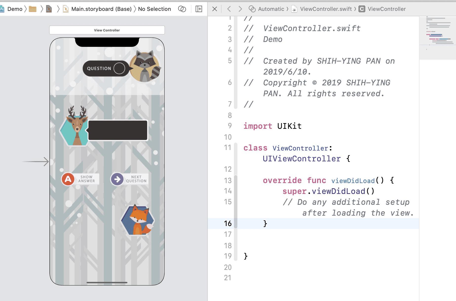 所以答案很清楚了,想拉 outlet / action 時,只要選擇 Assistant (快速鍵 cmd + option + control + enter),即可顯示我們熟悉的 Assistant Editor (輔助編輯)畫面。
