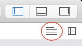 但是在 Xcode 11,右上角兩個圓圈的按鈕卻不見了 !