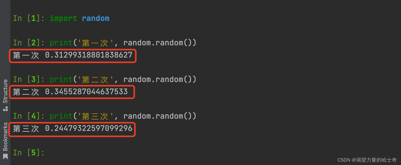 这种方法就是让我们通过一种概率去抽奖,在我们的实际工作中,经常会有这种类似的小活动让我们做一些抽奖。这些抽奖的活动就类似于这种方式,只不过有一些算法可能会更精密一些。而 random 模块可以快速的帮我们随机一些数字,帮助我们进行一些随机的处理。