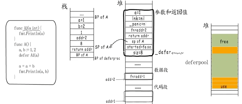 go会分配不同规格的_defer pool,执行时从空闲_defer中取一个出来用,没有合适的再进行堆分配。用完以后再放回空闲_defer pool。以避免频繁的堆分配和回收