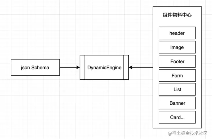 而 H5-Dooring 的组件都是通过动态加载的方式引入,按需加载,不需要的组件不会被加载。底层技术是在umi的dynamic方案的基于上封装了一个组件动态加载器,具体如如下图。本质上也是结合了 JSON Schema