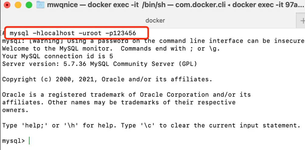mysql -hlocalhost -uroot -p123456