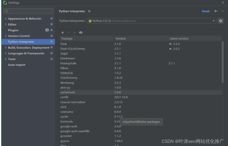 pycharm指定python路径⑥确定后,会展示该python环境下的已存在的包