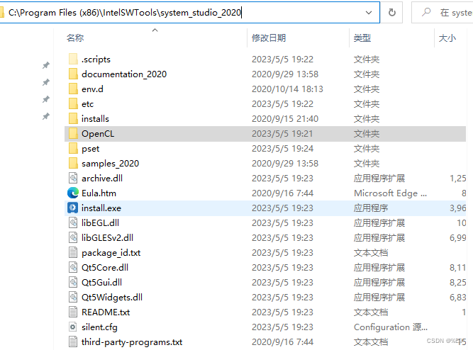 默认安装路径在C:\Program Files (x86)\IntelSWTools,找到OpenCL安装位置在C:\Program Files (x86)\IntelSWTools\system_studio_2020\OpenCL